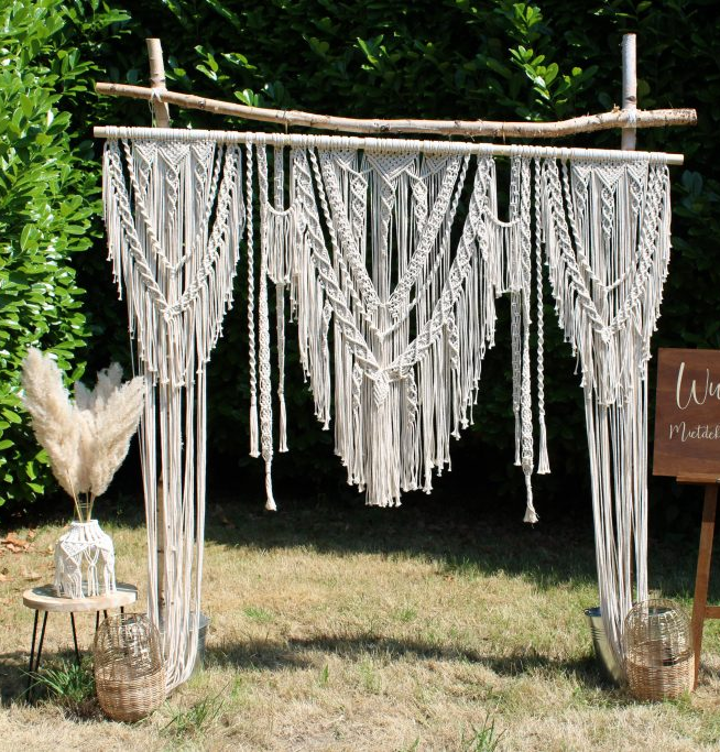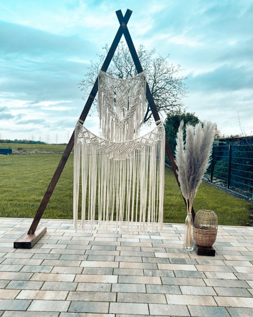 Ein Hingucker für eure Trauung bieten dieser Traubogen mit kleinem Makramee.